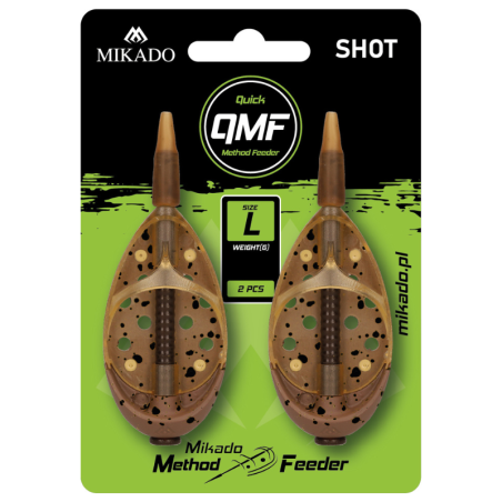 Koszyk Shot to rewolucyjna konstrukcja wśród podajników Method Feeder. Unikalny kształt przesuniętego do przodu obciążenia sprawia, że w locie zachowuje się bardzo stabilnie osiągając ekstremalne odległości. Wyposażony w system szybkiej wymiany QMF.